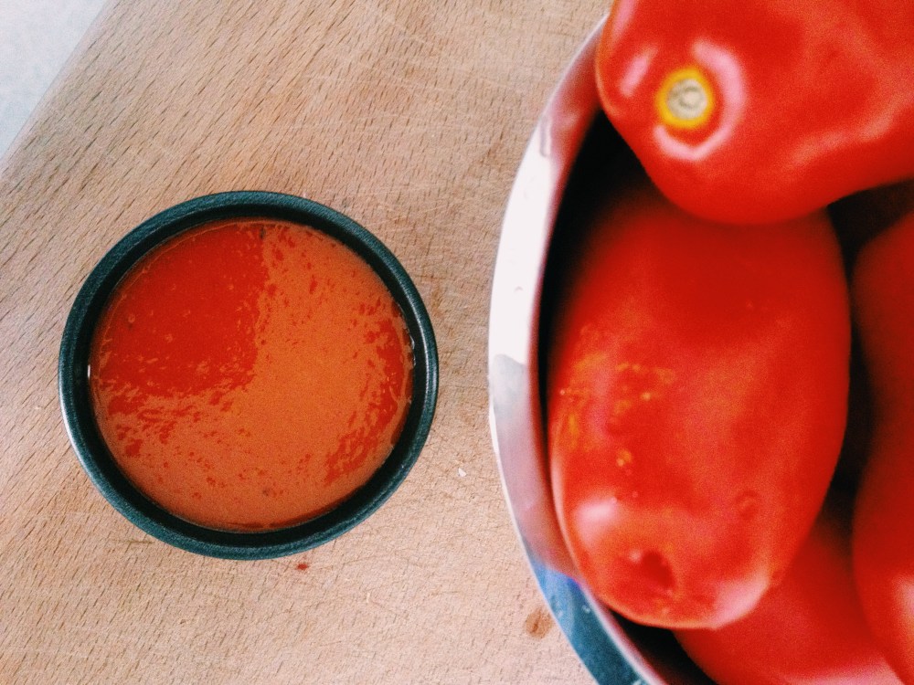 - Sbucciare i pomodori perini e tagliarli in pezzi grossi