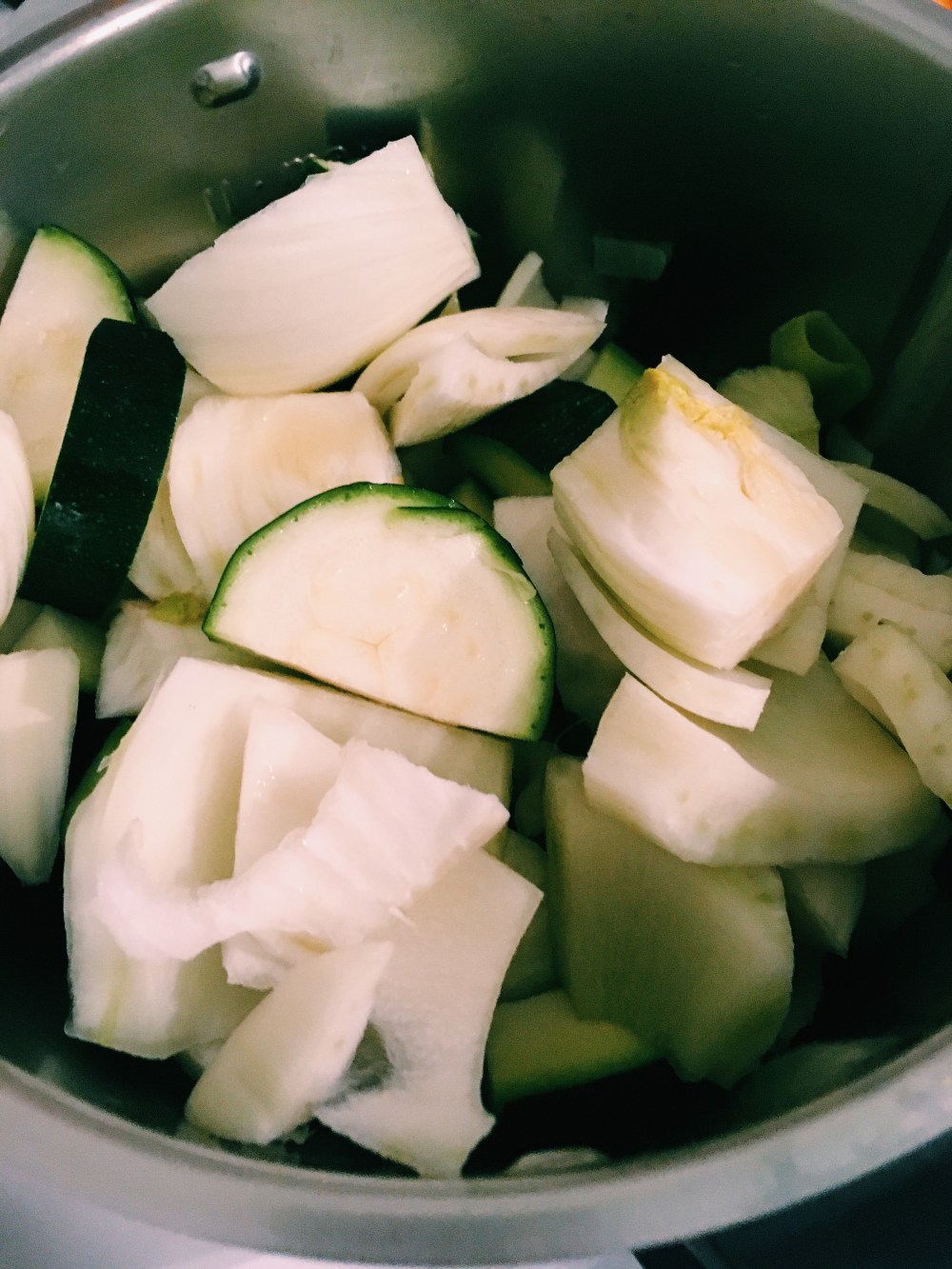 2 zucchine – 2 porri – 1 patata media – 1 finocchio – 1 cipollotto – 2 bicchieri di acqua ( o brodo vegetale se lo avete)-1 bicchiere di latte – 15 gr. di olio e.v.o. – sale e pepe q.b.