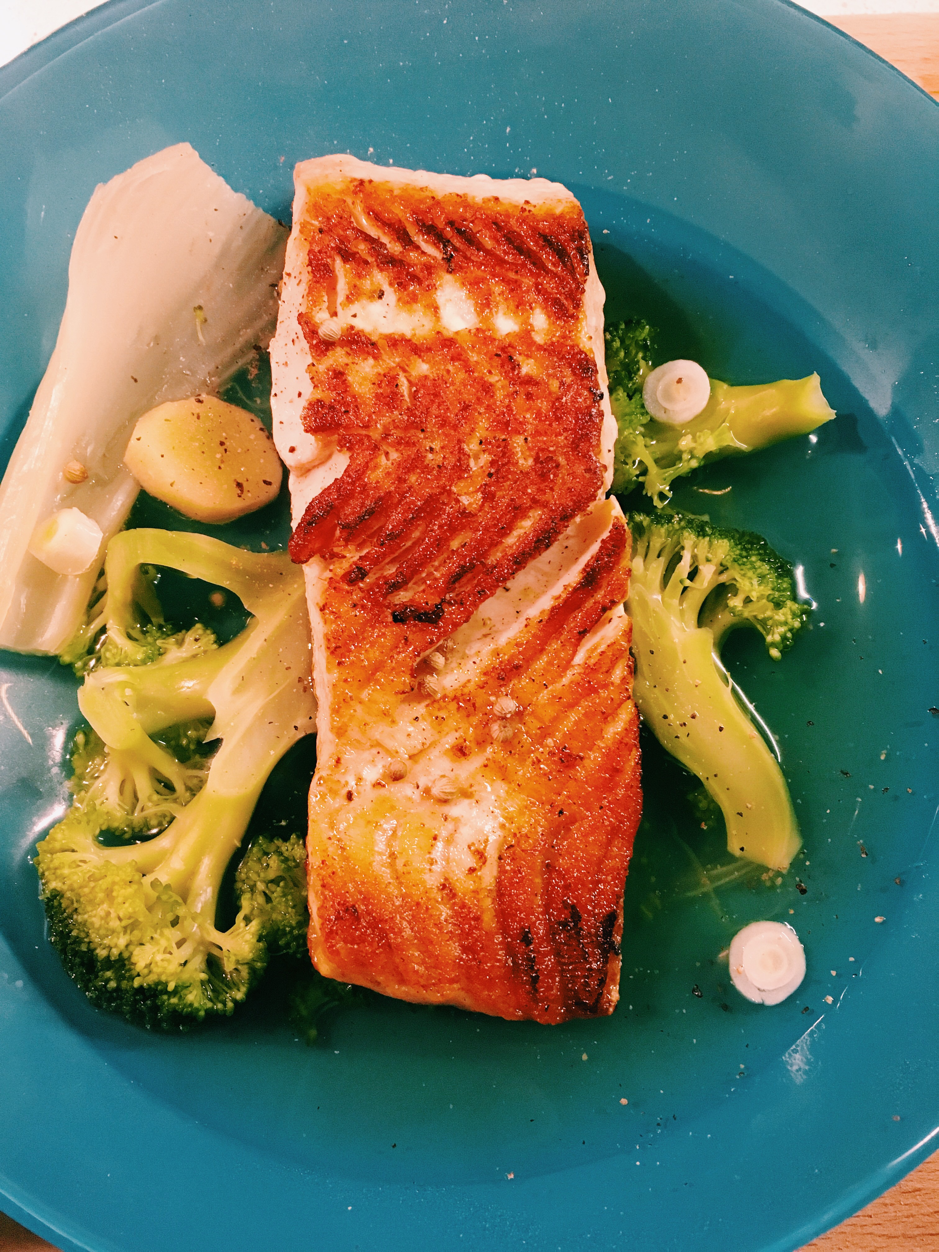 Salmone in Brodo Piccante di Verdure