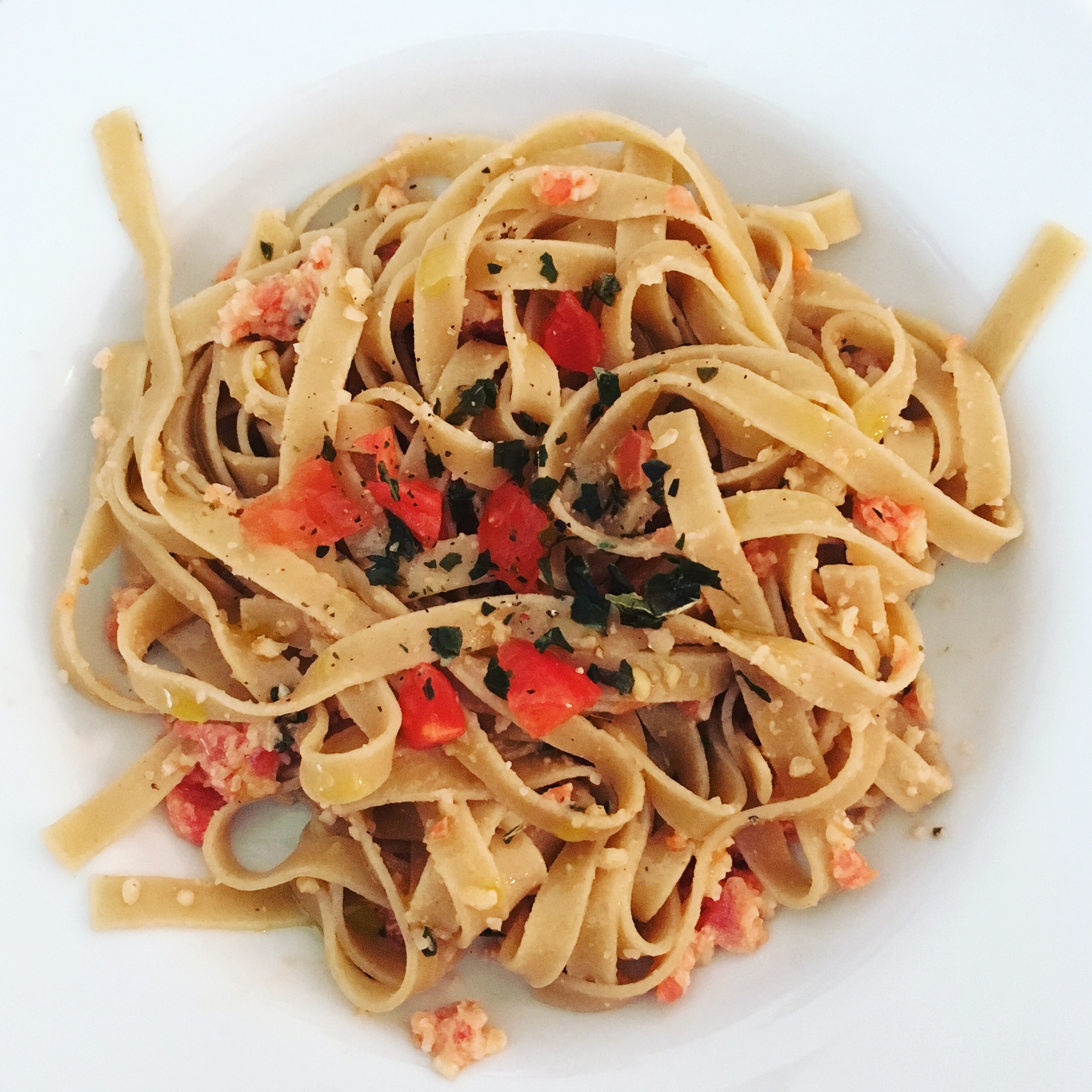 Oggi vi propongo una pasta che si prepara in 5 minuti, è molto buona e con poche calorie! Io come tipologia di pomodori ho usato il pizzutello ma potete usare anche altro tipo di pomodoro (basta non sia troppo asciutto). Quale sia la tipologia di pomodoro che sceglierete ricordatevi di sbucciarlo perché la buccia del pomodoro in questa ricetta proprio non ci sta! I miei pomodorini erano ben maturi pertanto non è stato necessario sbollentarli in acqua per togliere la pelle, consiglio pertanto di scegliere un pomodoro abbastanza maturo in modo da semplificare il procedimento.