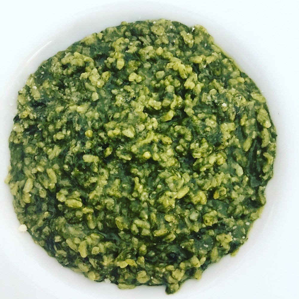 200 gr. di spinaci freschi puliti – 160 gr. di riso carnaroli – 1 cucchiaio di olio – mezzo scalogno – 450 gr. di acqua – un cucchiaino di dado vegetale