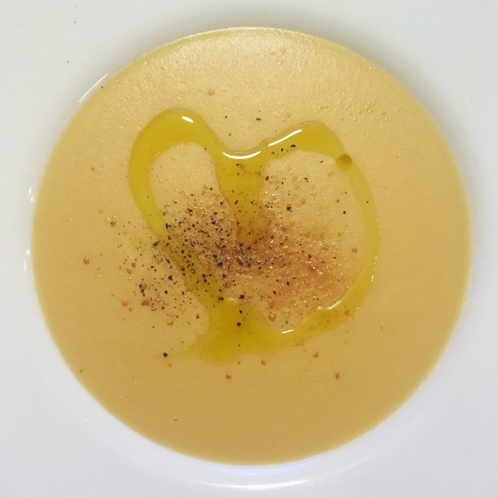 1 scatola di ceci lessati bio – una patata grossa – mezzo finocchio – acqua tiepida – un cucchiaino di dado vegetale Bimby – pepe – olio e.v.o. q.b.