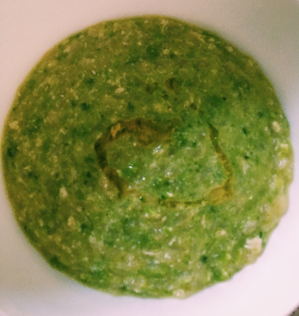 Per la pappa del mio bimbo ho tolto un paio di cucchiai dl sugo ottenuto prima di mettere sale e pepe. Ho poi cotto la sua pastina (puntine) nel brodo vegetale, aggiunto il sughetto verde e anche 40 gr. di pollo cotto a vapore e frullato, come indicatomi dal mio pediatra (ho messo una foto in fondo della pappa).