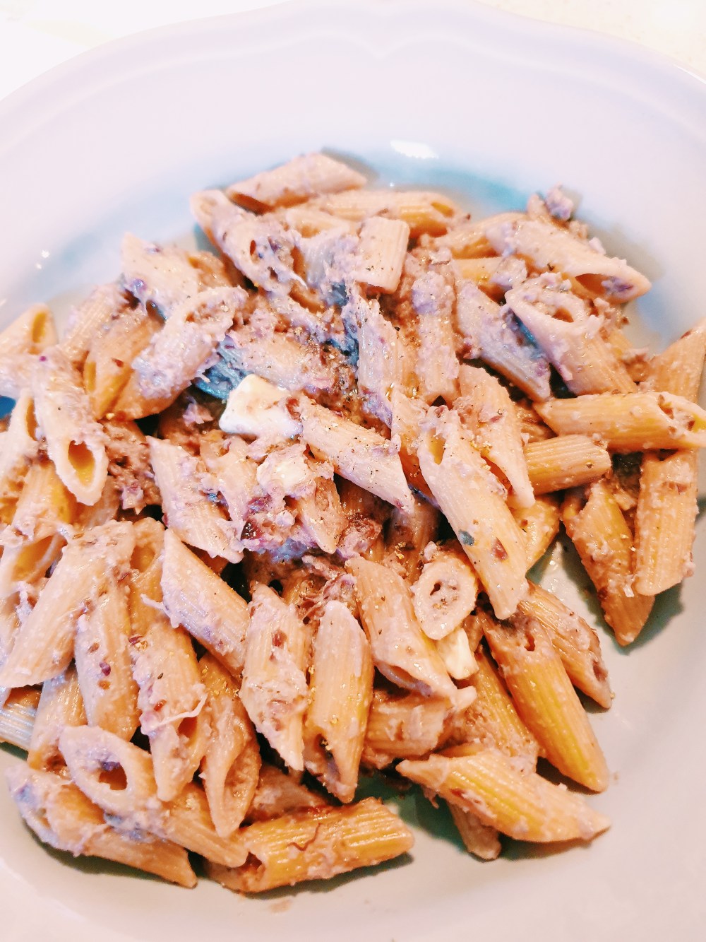 E’ ufficialmente arrivato il freddo e con esso una voglia irrefrenabile di mangiare (almeno per quanto mi riguarda). Visto che nelle ultime settimane ho dato libero sfogo alla gola e non ho il coraggio di pesarmi, ieri sera, un po’ in preda ai sensi di colpa ho deciso che dovevo necessariamente rimettermi in carreggiata sul fronte alimentare. Per questo oggi a pranzo ho preparato questa pasta che ho condito con un pesto di radicchio e anacardi. Per il bengodi della domenica ho aggiunto un po’ di brie. Per questa ricetta ho preso spunto dal mio super libro di Marco Bianchi e, come sempre, il risultato è stato insuperabile! Nella versione originale di questo pesto si prevedeva il quartirolo lombardo. Io non lo avevo in frigo, quindi ho deciso di optare per il brie, che personalmente adoro…e che profumino nell’insieme!