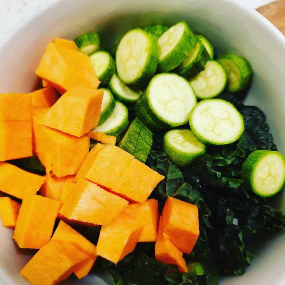 2 foglie di cavolo nero – un pezzetto di patata dolce (circa 40 gr.) – 1 zucchina piccola – 1 rondella piccola di porro – 2 cucchiai di puntine di riso (o riso per bambini) – 2 filetti di sogliola, 300 gr. di acqua – 1 cucchiaino di olio e.v.o.
