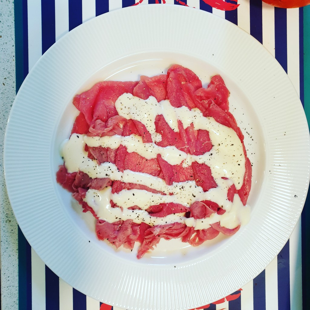 Il segreto sta soprattutto nella freschezza e qualità della carne, che essendo cruda, deve essere altissima. Io mi sono affidata al mio macellaio e mi ha preparato delle fettine squisite che ho dovuto solo condire con la salsa che ora andrò a spiegarvi