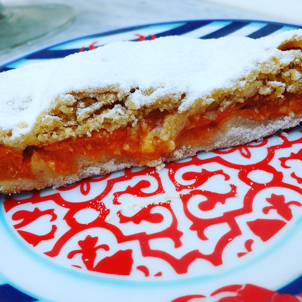 E’ un dolce adatto a tutti, anche ai più piccoli. Lo realizzo con la pasta frolla, perché è anche la versione che, in generale, mi piace di più anche per lo strudel classico di mele. Provate e sentirete la bontà. Si può accompagnare ad una pallina di gelato alla vaniglia, a della panna o ancora, a una salsa (alla vaniglia) che è poi come lo presentano nei rifugi in Alto Adige. I passaggi sembrano tanti ma perché ho dettagliato le fasi una ad una, è semplicissimo farlo! Provare per credere 🙂