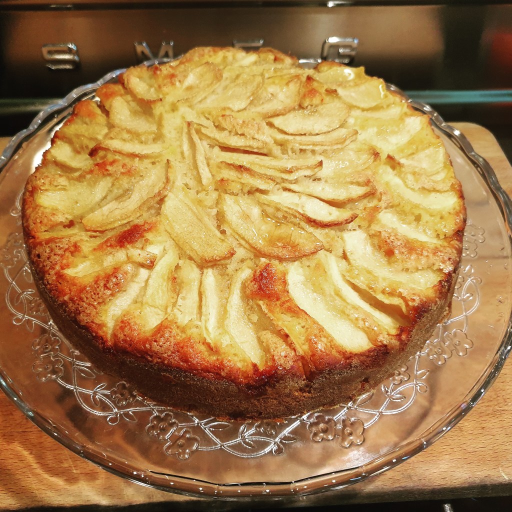 Sono molto in ritardo con la pubblicazione delle mie ricette, come sempre, il “colpevole” è il poco tempo. Tuttavia sono di nuovo in una fase, che prendendo in prestito dal gergo economico, definirei “espansiva”, ovvero sto cucinando molte cose nuove. Complice è l’autunno e il passare molto più tempo in casa che ti fa venire voglia di riscoprire e di scoprire. Una scoperta che ho fatto molto recentemente sono il libri di Csaba Dalla Zorza. Sicuramente sarò una degli ultimi a non conoscere questa bellissima ed elegante donna, noto volto televisivo, ma, ahimé non guardo programmi televisivi da tempo immemore e quindi ero rimasta all’oscuro dell’esistente di Csaba. I suoi libri hanno lo stesso effetto di quelli di Donna Hai, ovvero mi rilassano tantissimo, con l’aggiunta che in quelli di Csaba trovi lunghe parti discorsive e descrittive che mi piacciono molto. Quando ho avviato questo blog, il mio intento era condividere con altri la mia passione per la cucina, per le ricette sane e belle e in Csaba ho trovato una maestra d’eccezione. Quando leggo i suoi libri ritrovo quell’idea di perfezione che tanto vorrei anche io sulla mia tavola o in casa. Una perfezione non stucchevole o insipida, ma calda e avvolgente. Fatta tutta questa premessa, posto a seguire la ricetta della sua torta di mele tratta dall’ultimo libro che ha pubblicato e che si chiama Honestly Good. Ho rivisitato alcuni dosaggi. La torta è venuta ottima e bella.