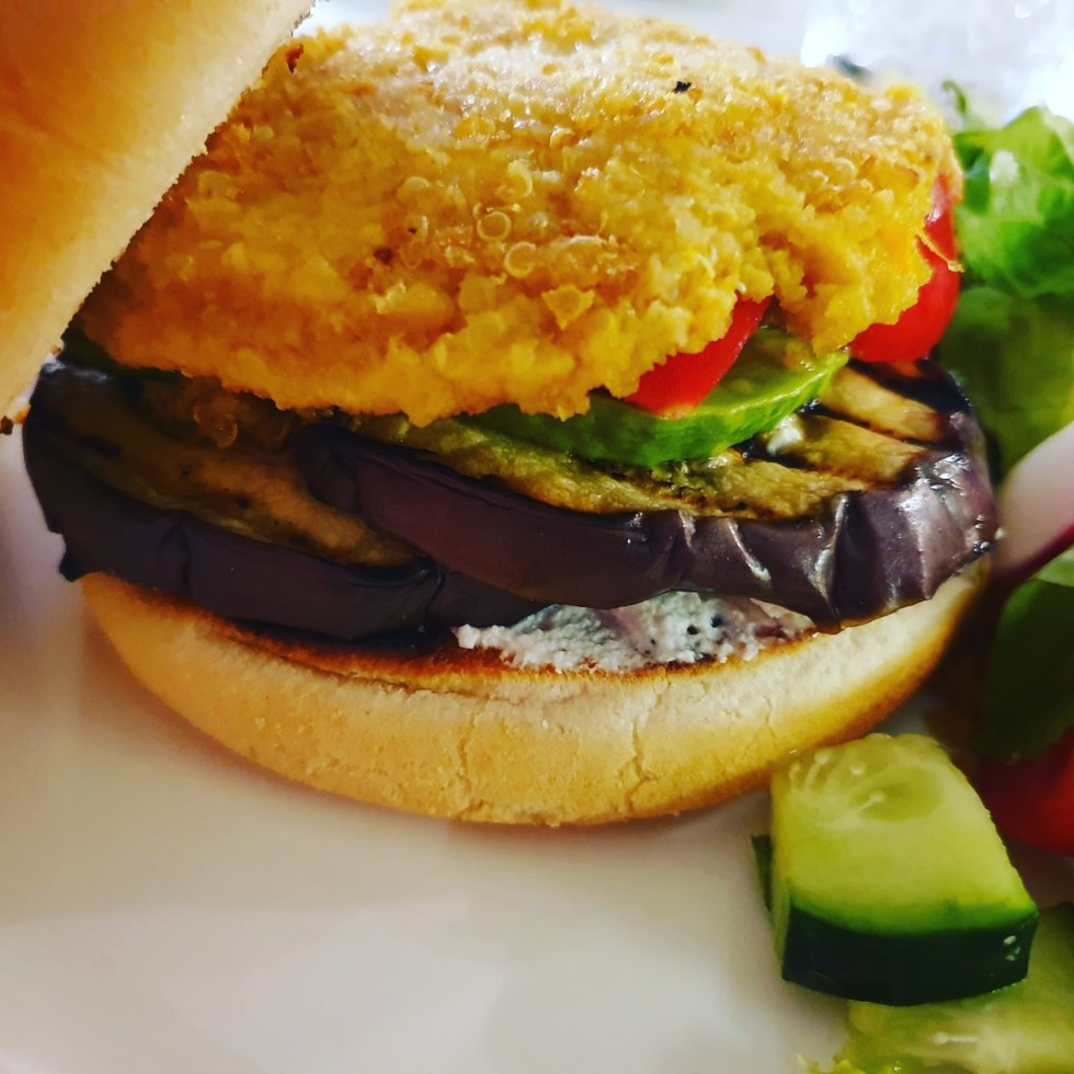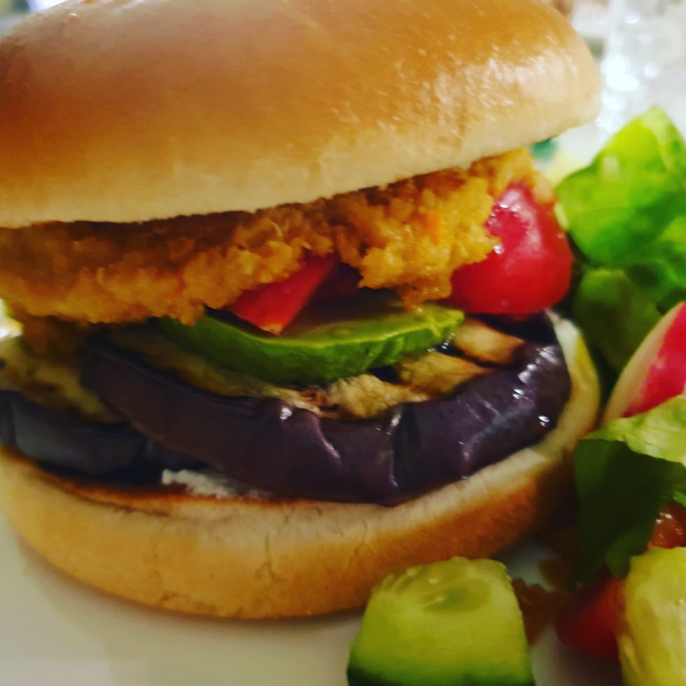 - Per creare i burger è sufficiente fare delle polpette più grandi. Come si vede in foto io ho preparato degli hamburger utilizzando del pane da burger, spalmando della ricotta aromatizzata con erba cipollina, melanzane grigliate, avocado e pomodorini